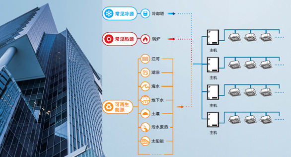 作為一款由大金全新設(shè)計(jì)開(kāi)發(fā)的產(chǎn)品,大金VRV水源熱泵系列商品搭載噴氣增焓高中壓腔渦旋式壓縮機(jī)和大容量板式換熱器,在有效提高機(jī)組能效的同時(shí)降低系統(tǒng)壓損,同時(shí)第三代Heat Pipe液態(tài)管冷卻技術(shù)大幅提升了機(jī)組的穩(wěn)定性和信賴性,寬廣的水溫運(yùn)轉(zhuǎn)范圍使得大金VRV水源熱泵商品不僅可以選用常見(jiàn)的冷卻塔作為冷熱源,還可選擇多種可再生能源作為冷熱源。